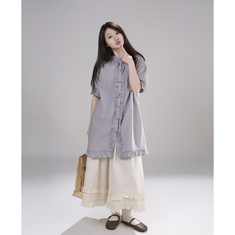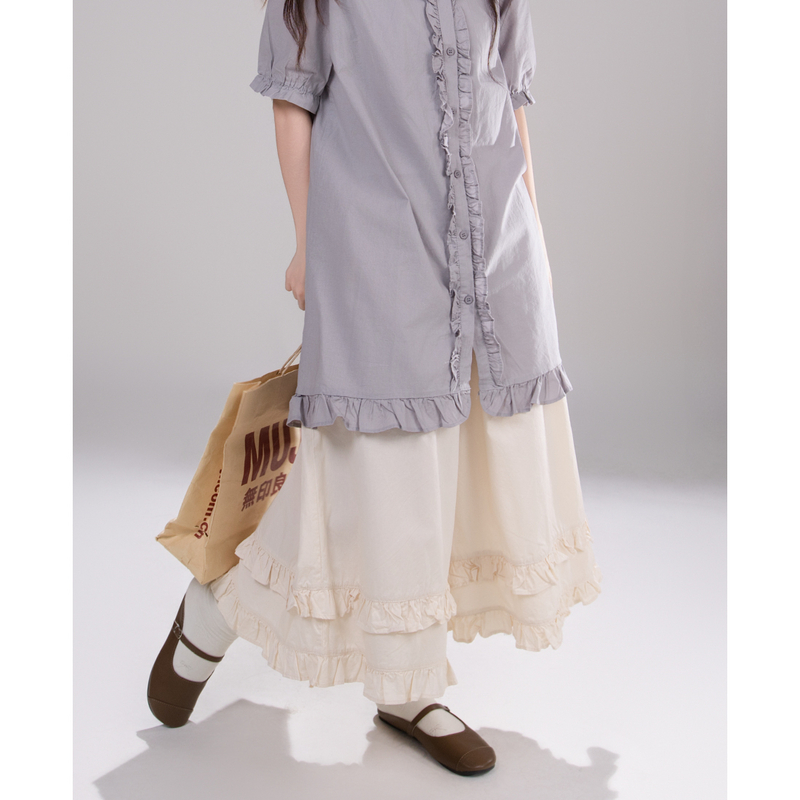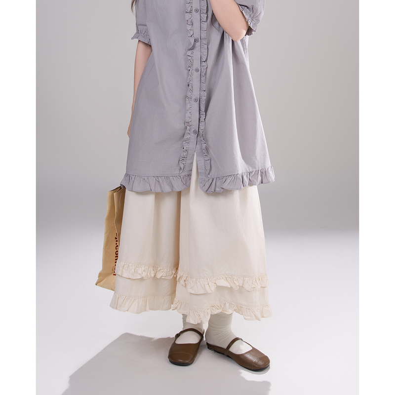 艺野系森系文艺木耳花边小个子薄款宽松阔腿裙裤女夏山本裤九分裤