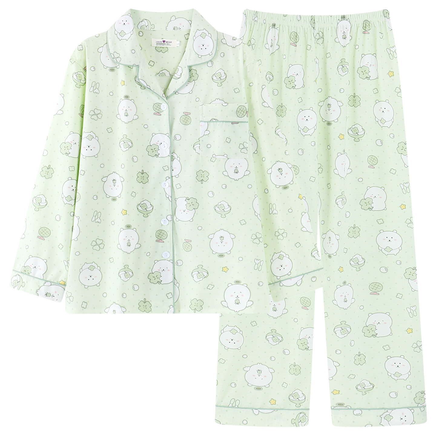 薄荷绿自嘲熊睡衣春秋季长袖纯棉