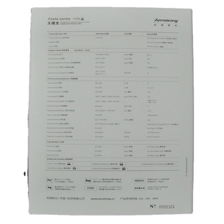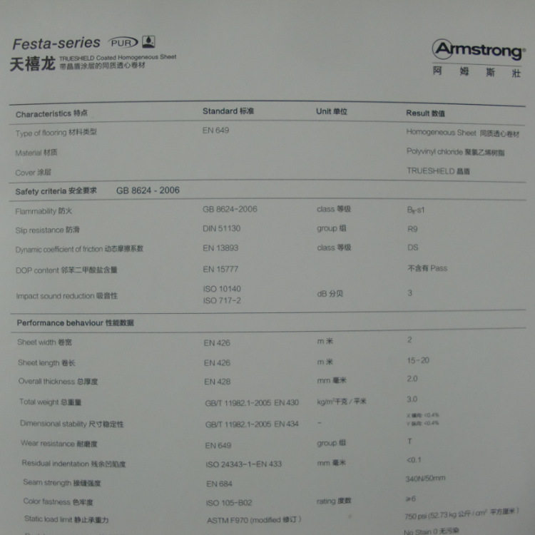 阿姆斯壮天禧龙晶盾同质透心地材2*20MM