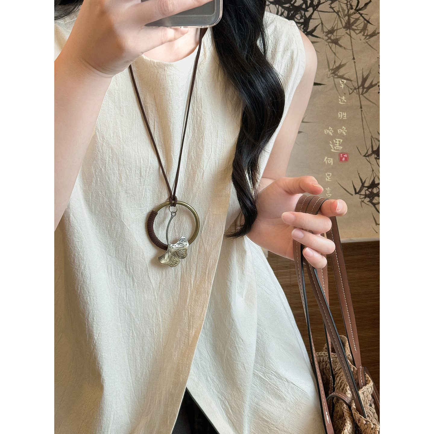 银杏叶编织木质长款项链女新中式复古毛衣链波西米亚民族风配饰品