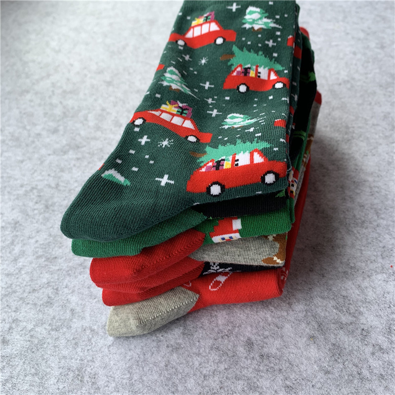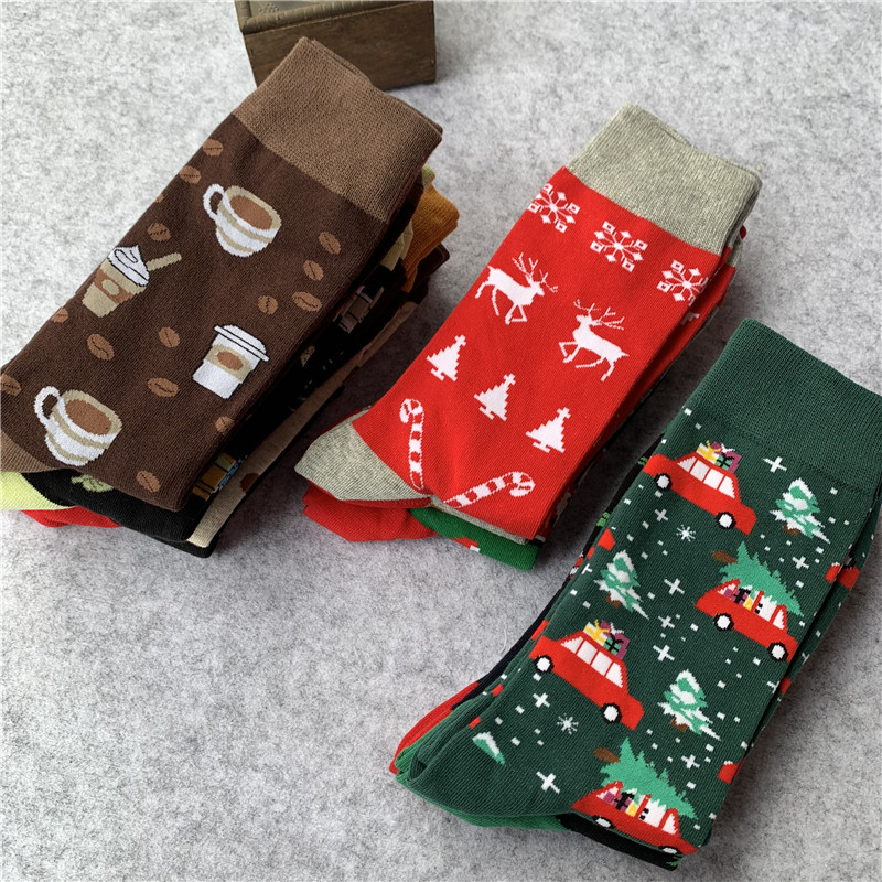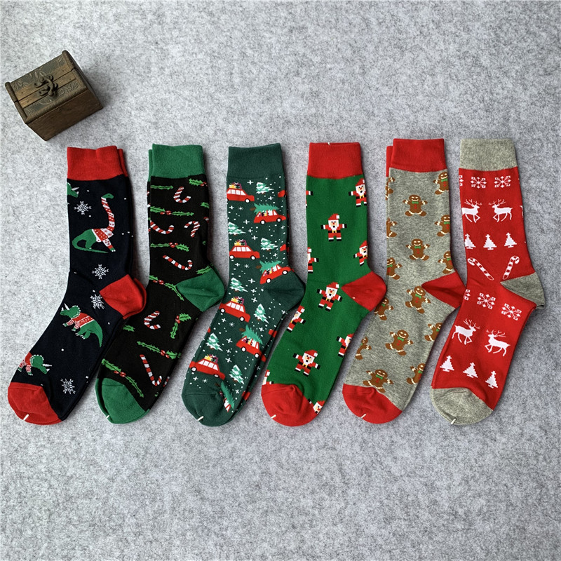 欧美圣诞礼物潮流长袜麋鹿圣诞老人袜子冬天加厚大码保暖纯棉男女