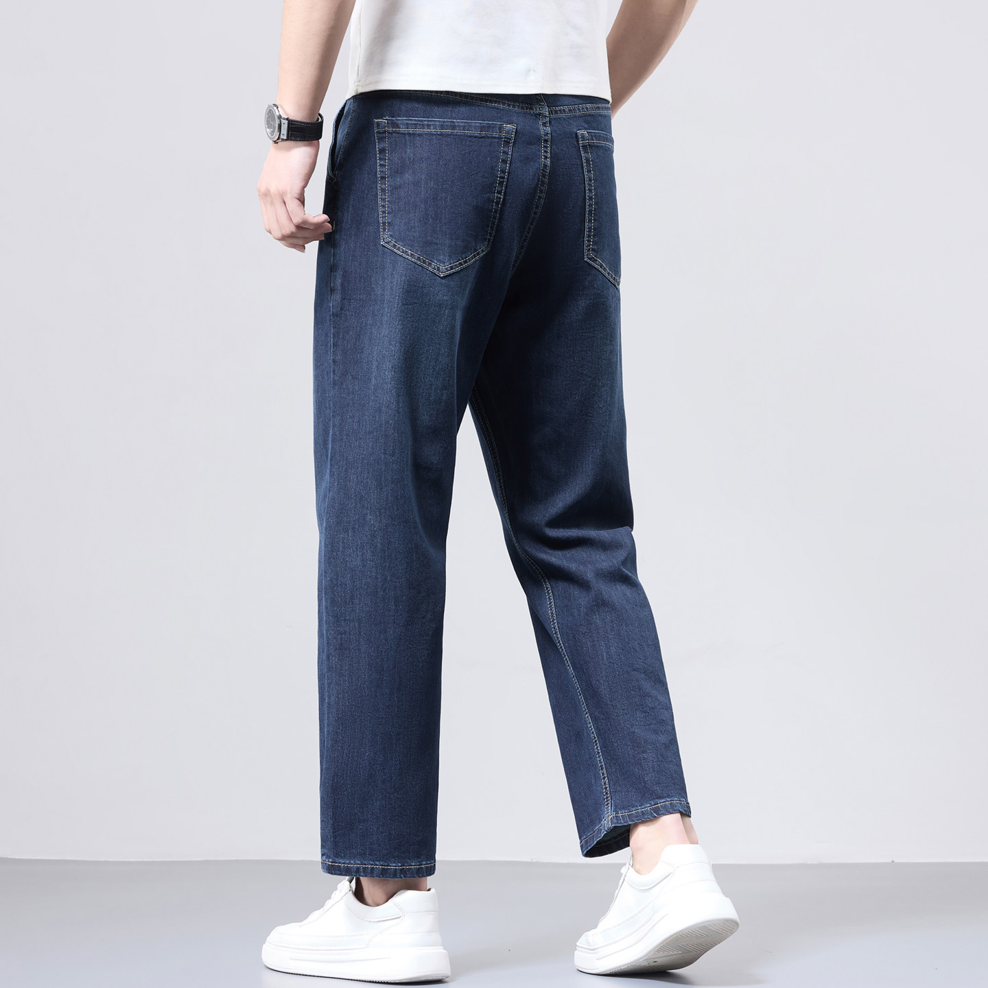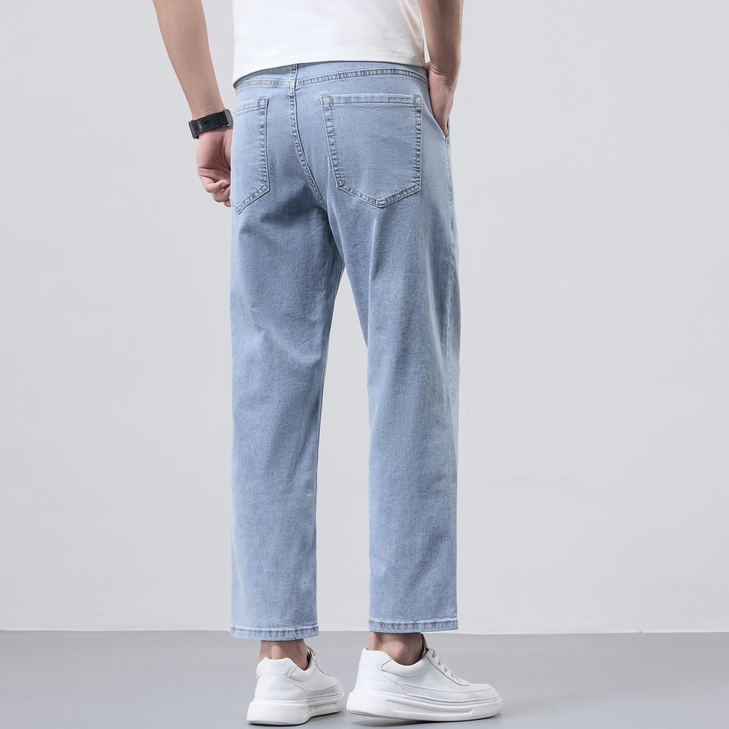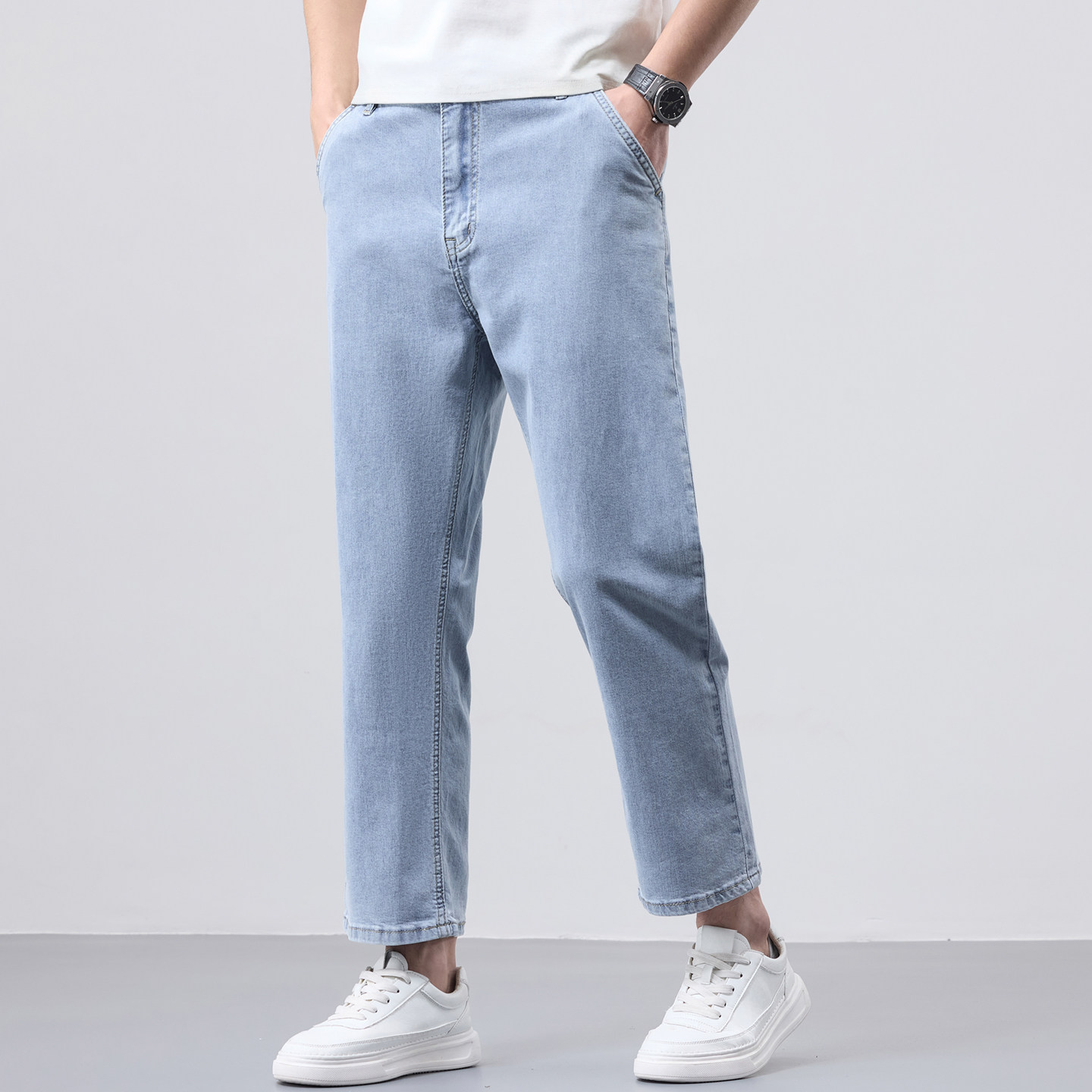 春季浅色九分牛仔裤男款宽松直筒男士小个子9分裤中年水洗男裤