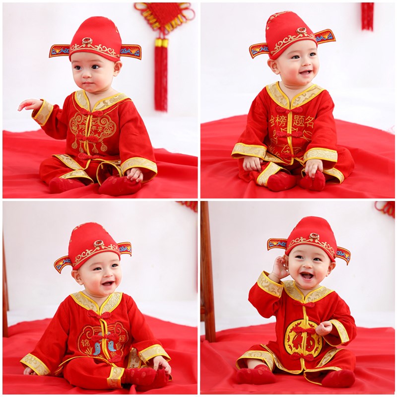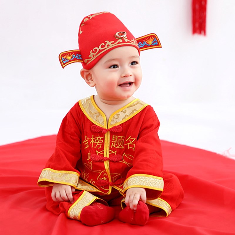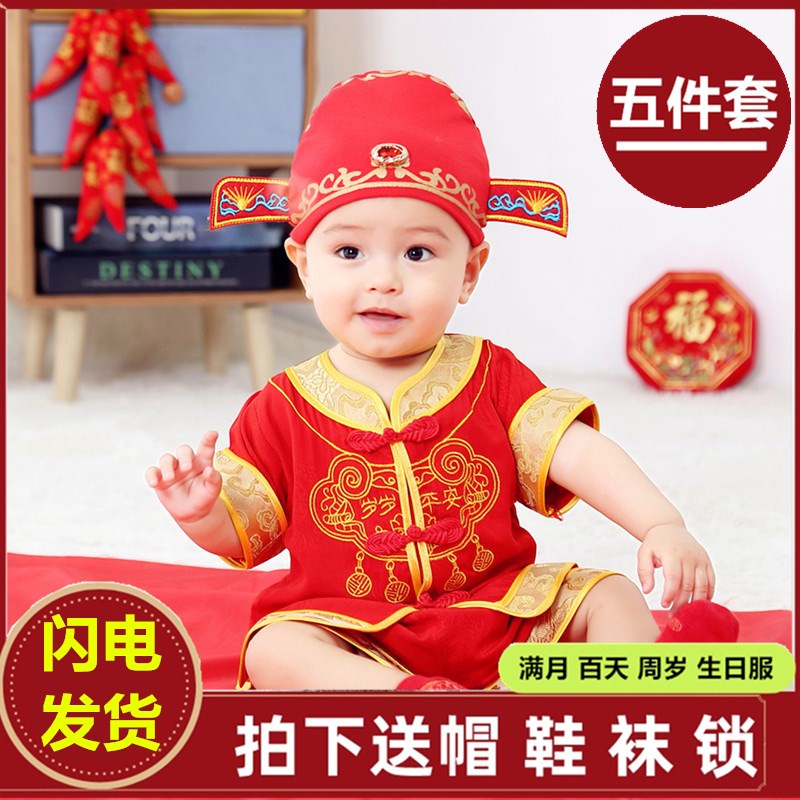 一周岁宝宝衣服婴儿抓周礼服新中式生日儿童喜庆唐装套Y装夏季薄