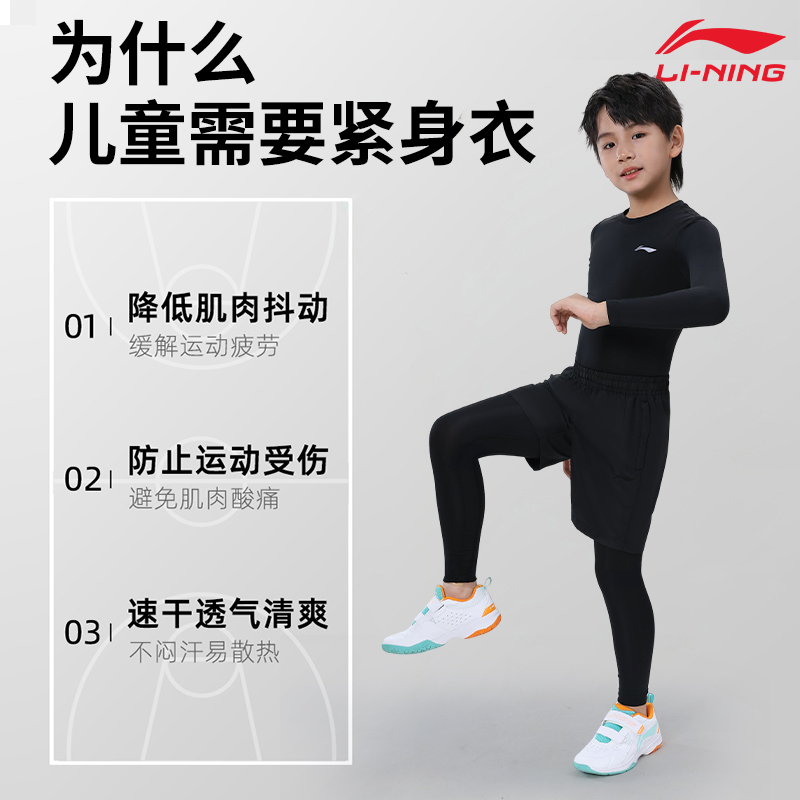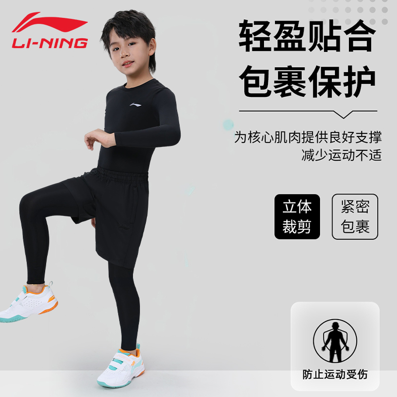 李宁儿童紧身衣训练服男童篮球服打底运动套装跑步足球速干衣长袖