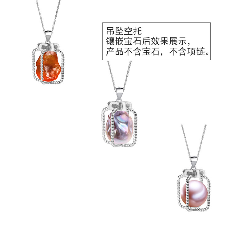 S925纯银吊坠空托DIY项链颈坠镶嵌玉石翡翠绿松石随形珍珠空托女