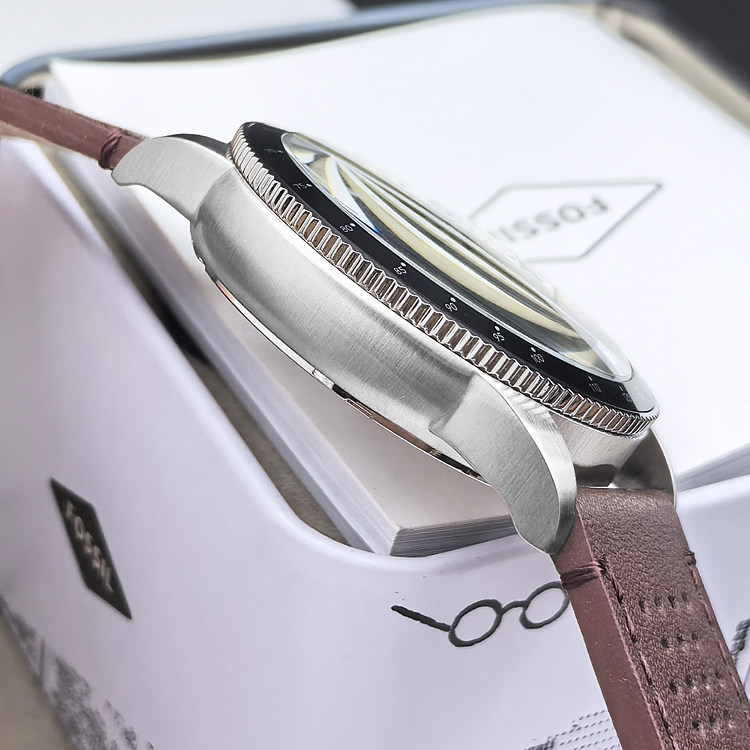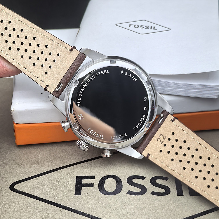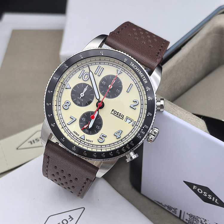 FOSSIL手表真皮表带透气三眼计时商务休闲石英表防水男表FS6042