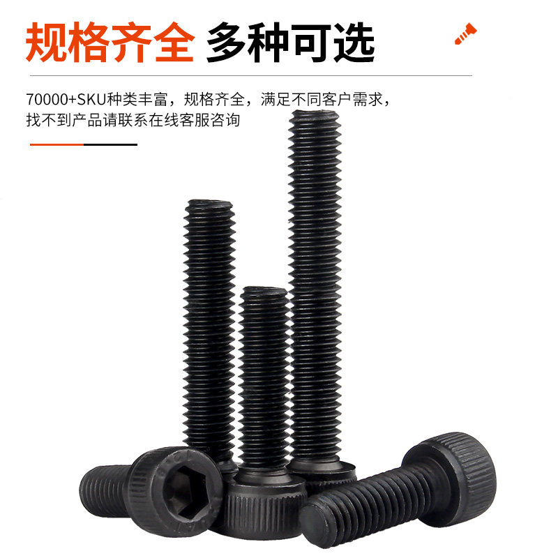 12.9级高强度内六角螺丝圆柱头螺栓10mm全牙杯头螺钉M2M3M4M5M6M8