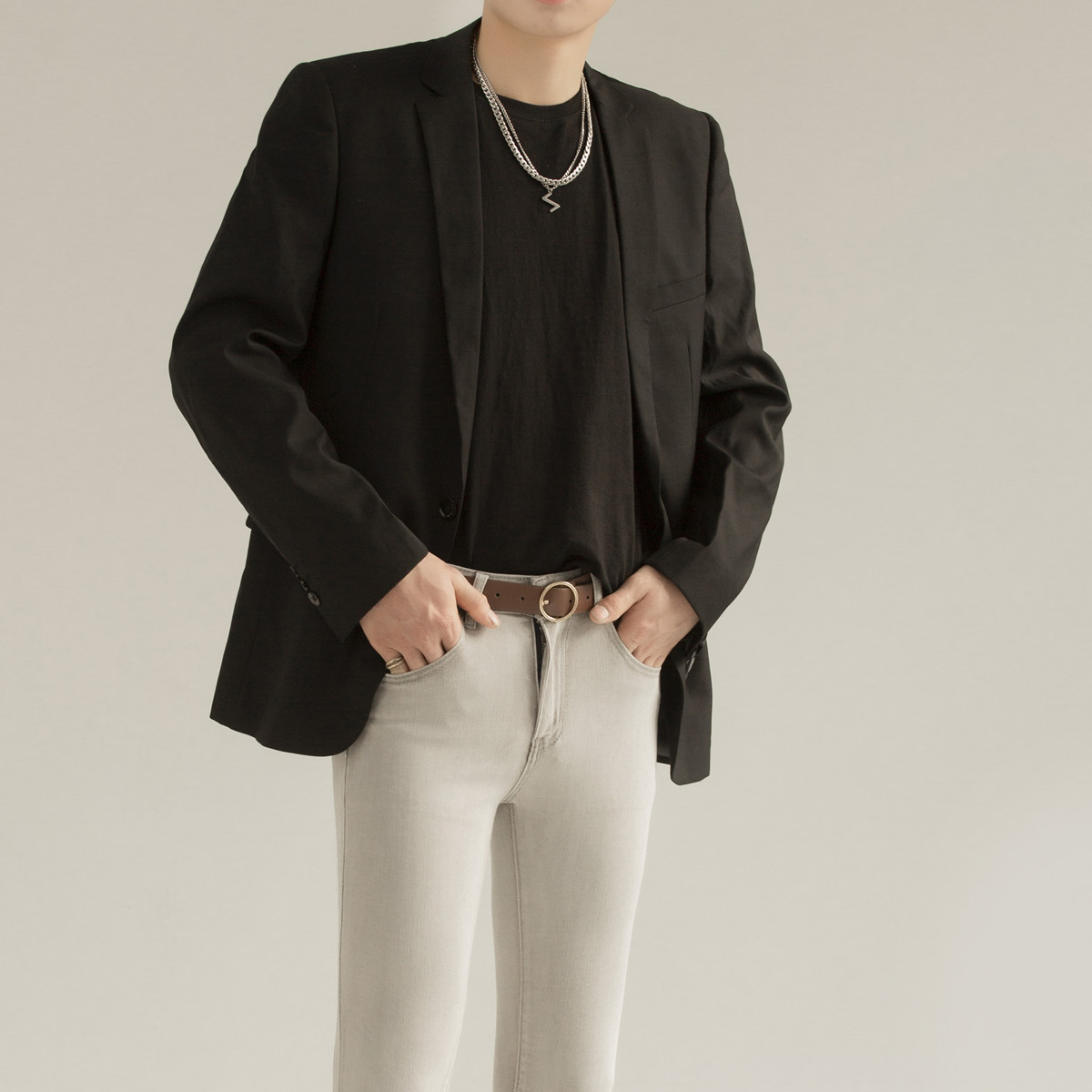 长裤水洗灰色高弹力紧身牛仔裤