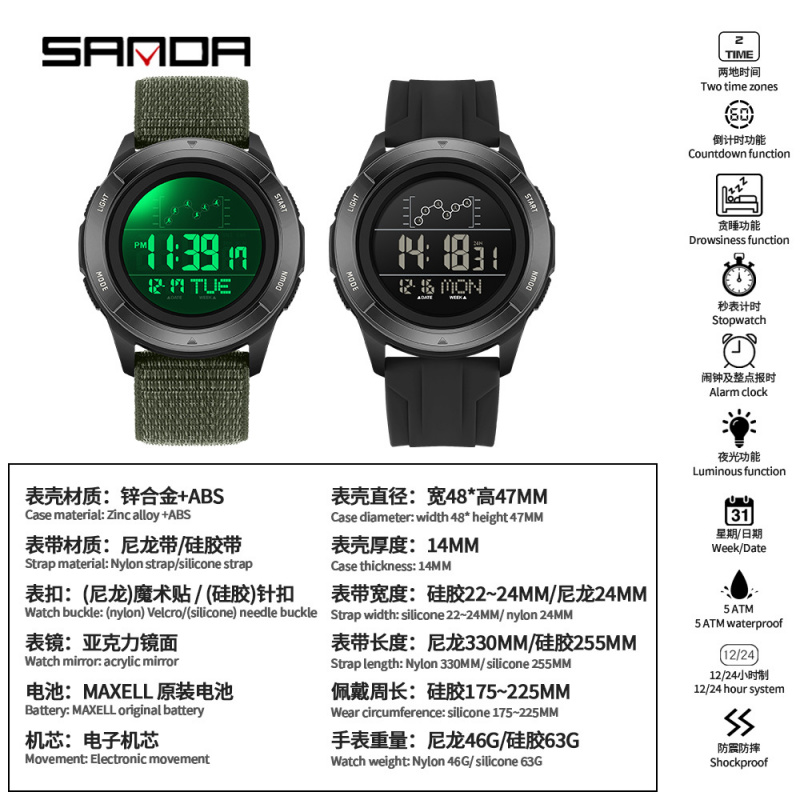 新款品牌时尚多功能男表倒计时手表学生户外运动游泳防水男士腕表