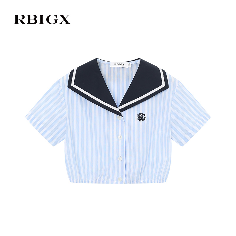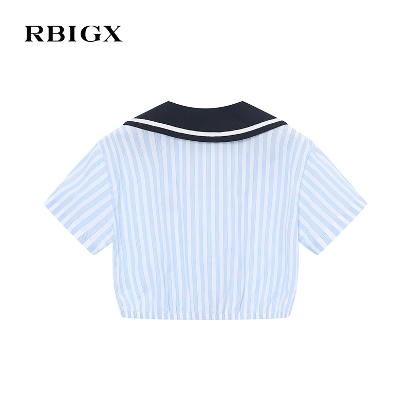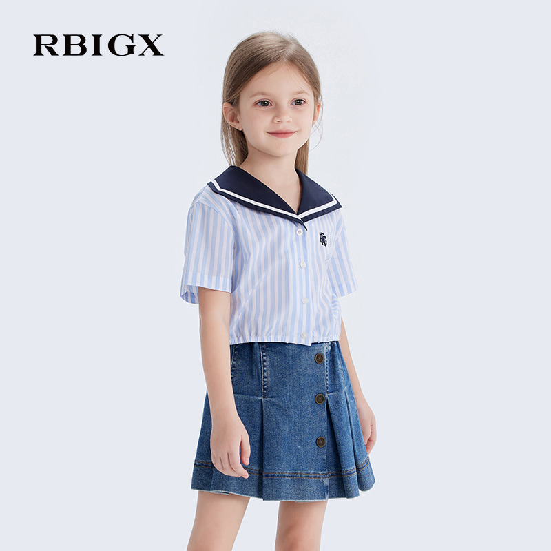 RBIGX瑞比克童装2025夏季新款女童撞色翻领短袖衬衫截短式上衣