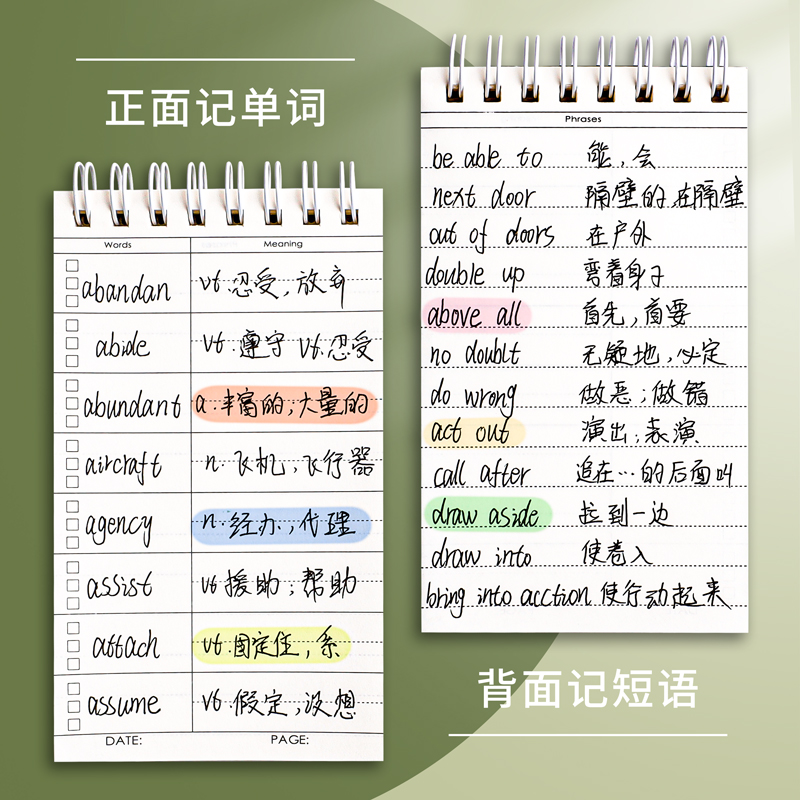英语背单词记忆本随身便携可遮挡环扣艾宾浩斯记背单词小号口袋笔记本四六级英文专升本考研雅思初中高中考试