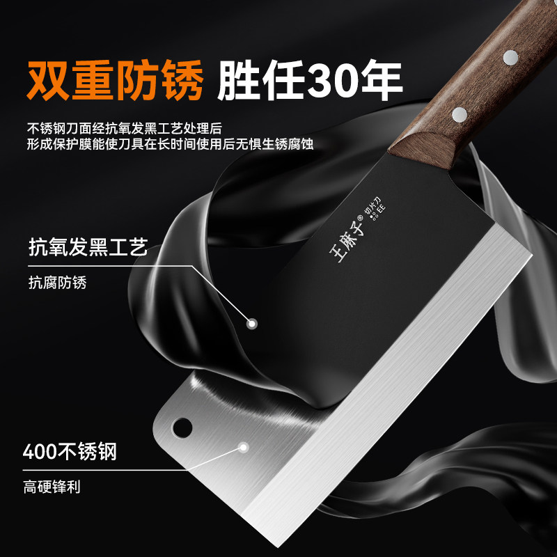 王麻子锻打菜刀家用第一名厨房切片切菜切肉厨师专用刀具斩切两用