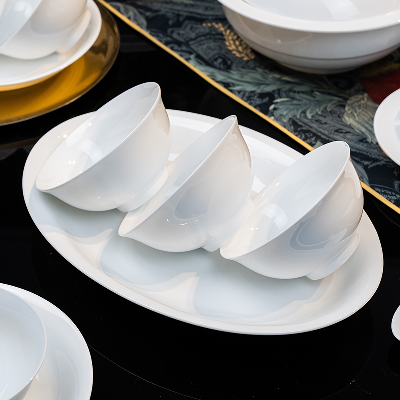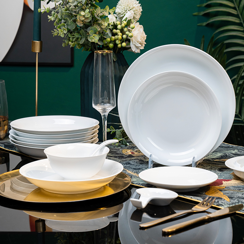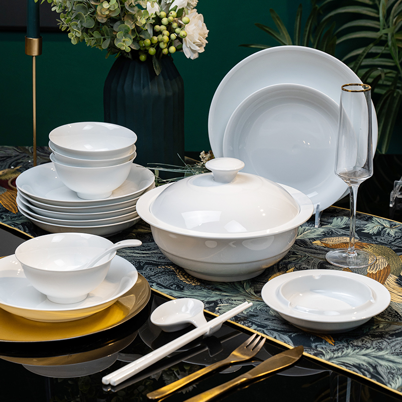 高白瓷餐具套装高温釉下彩景德镇本土健康碗盘碟家用轻奢纯白乔迁