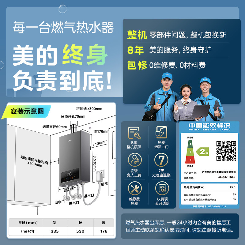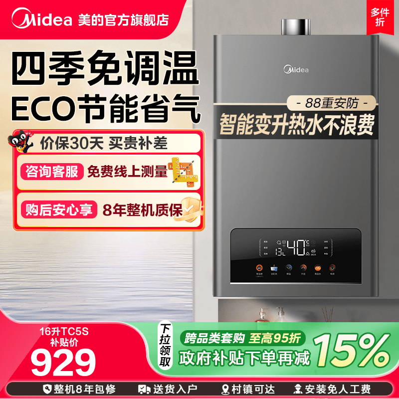 美的燃气热水器水伺服13L16升家用天然气恒温变频TC5S