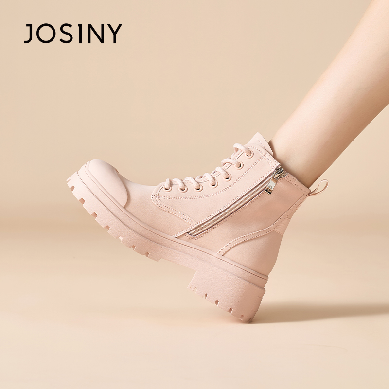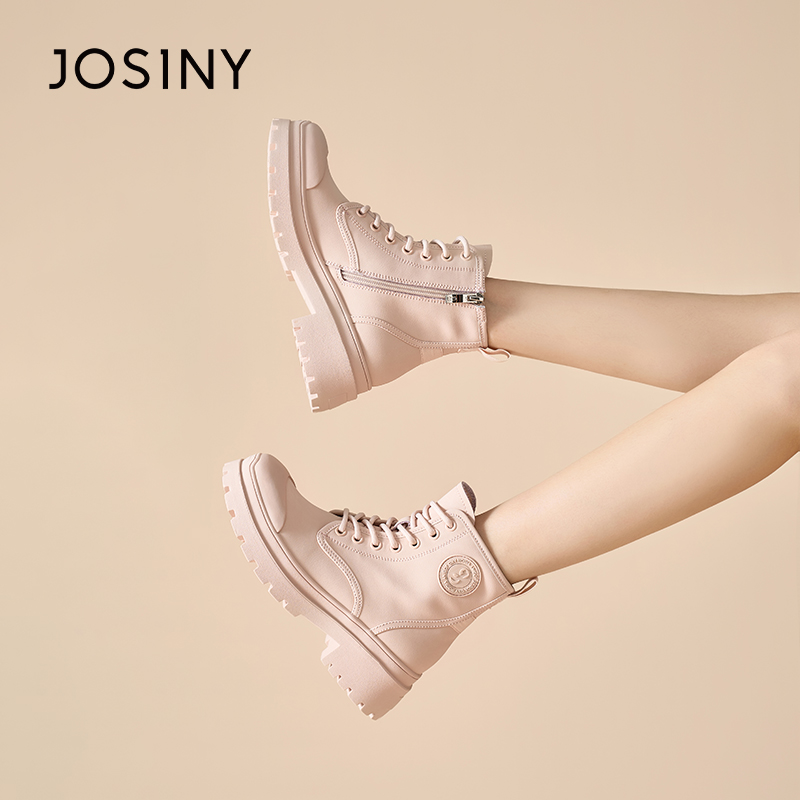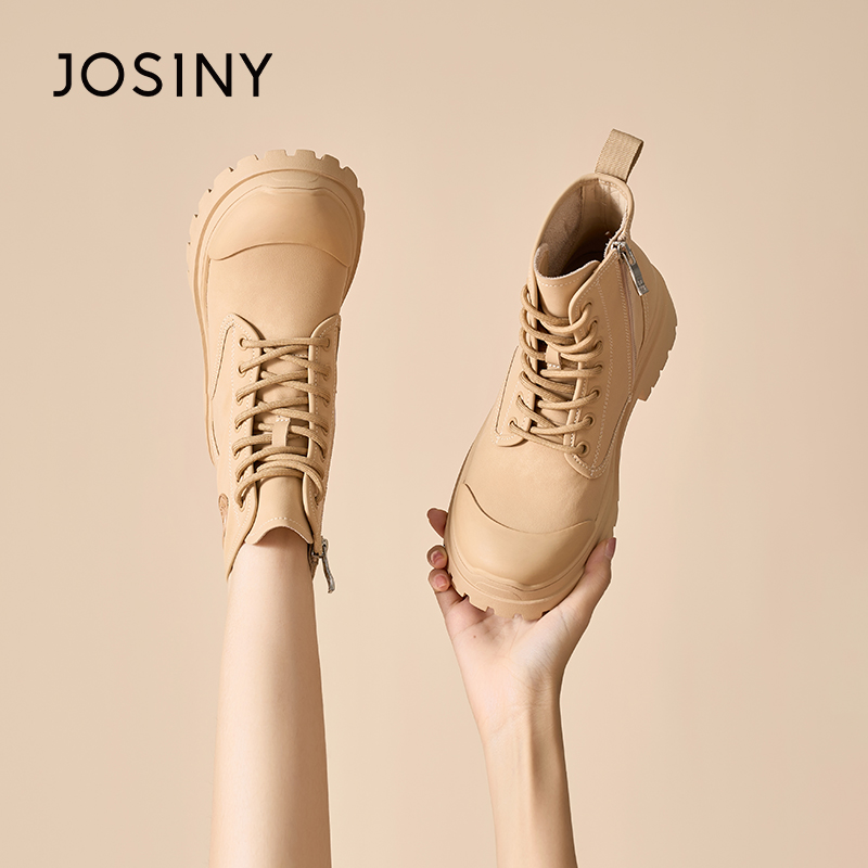 卓诗尼厚底机车靴女2025年早秋新款百搭大黄靴粗跟马丁靴短筒靴子