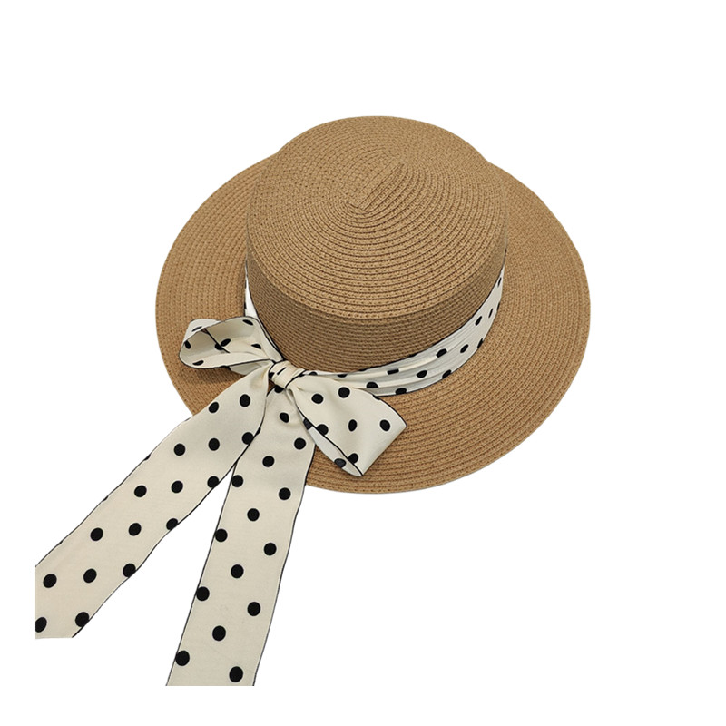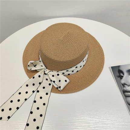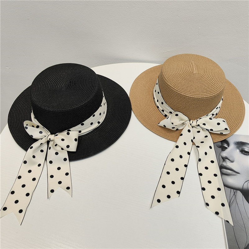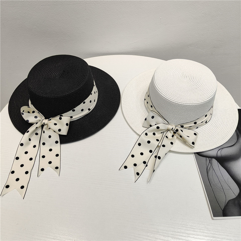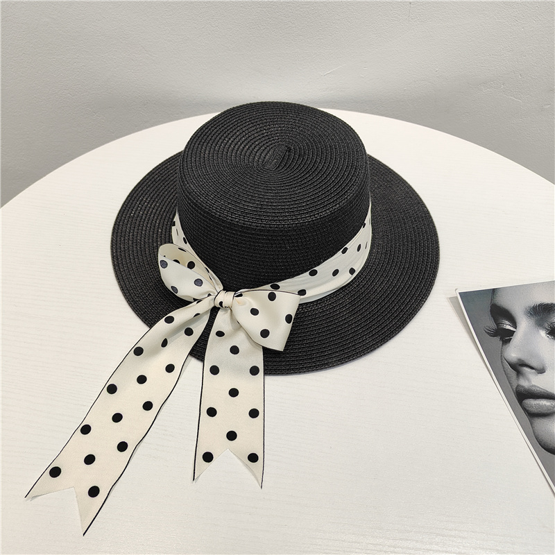 法式复古草帽女夏季时尚百搭波点蝴蝶结遮阳沙滩帽防晒太阳帽子潮