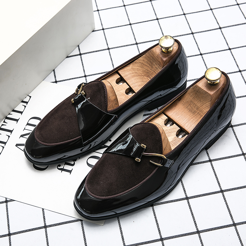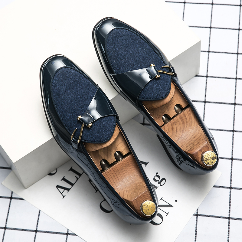 英伦潮流男士休闲小皮鞋夏季尖头一脚蹬懒人鞋韩版百搭发型师黑色
