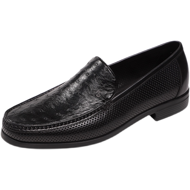 金利来男鞋2024夏季新款正品高端镂空鸵鸟皮商务休闲皮鞋男皮凉鞋