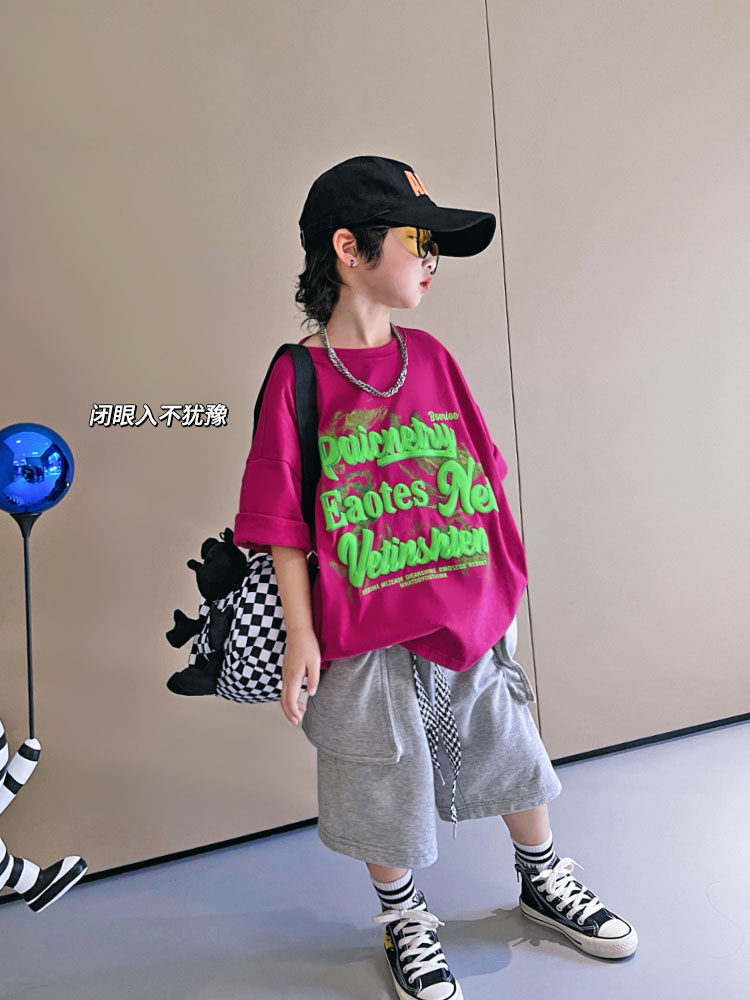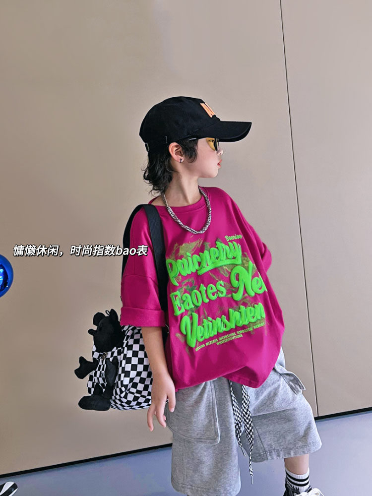 童装夏装儿童时髦体恤衫中大童上衣男童纯棉短袖T恤男孩夏季潮牌t