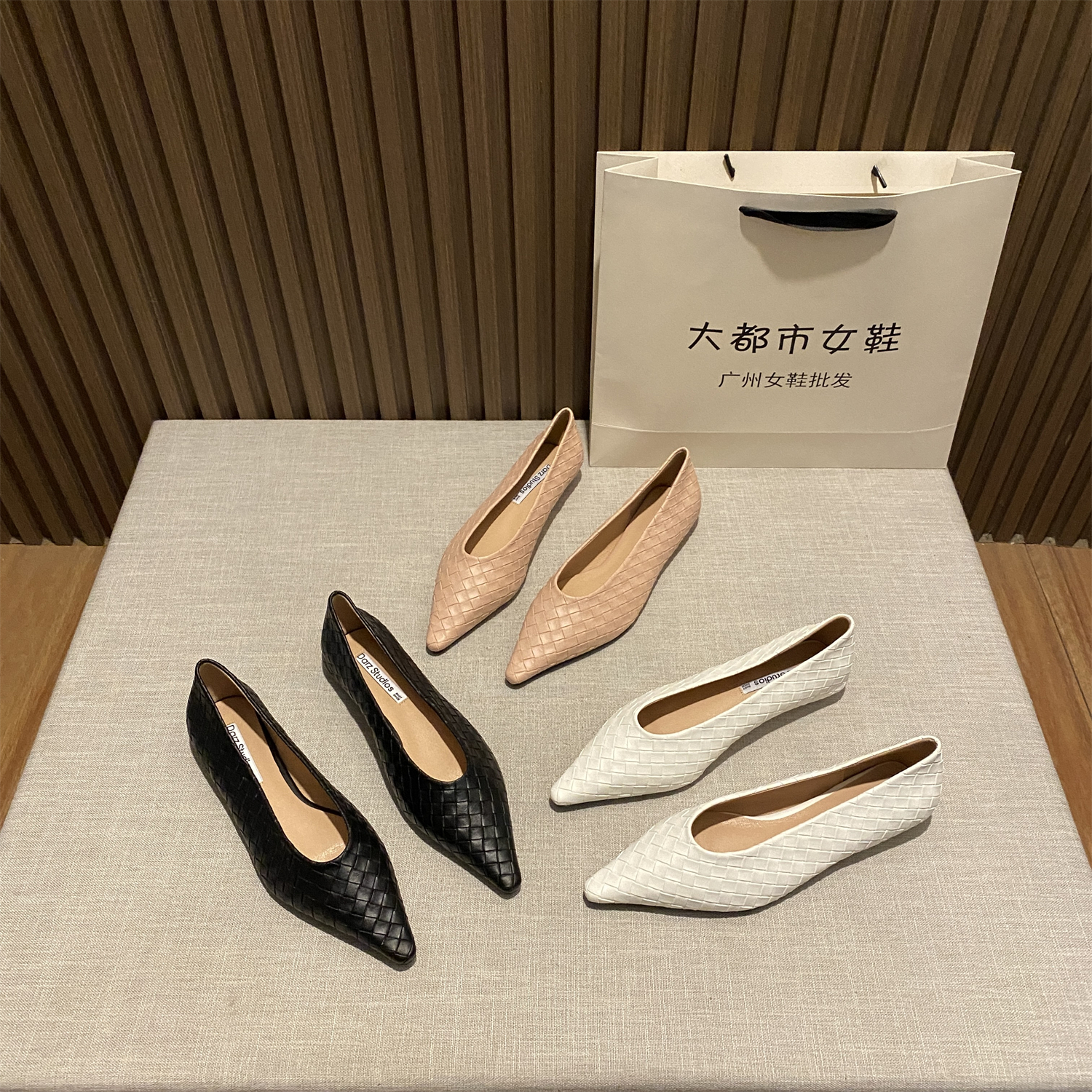 韩版温柔尖头编织坡跟浅口单鞋2025年春夏新款简约一脚蹬舒适瓢鞋