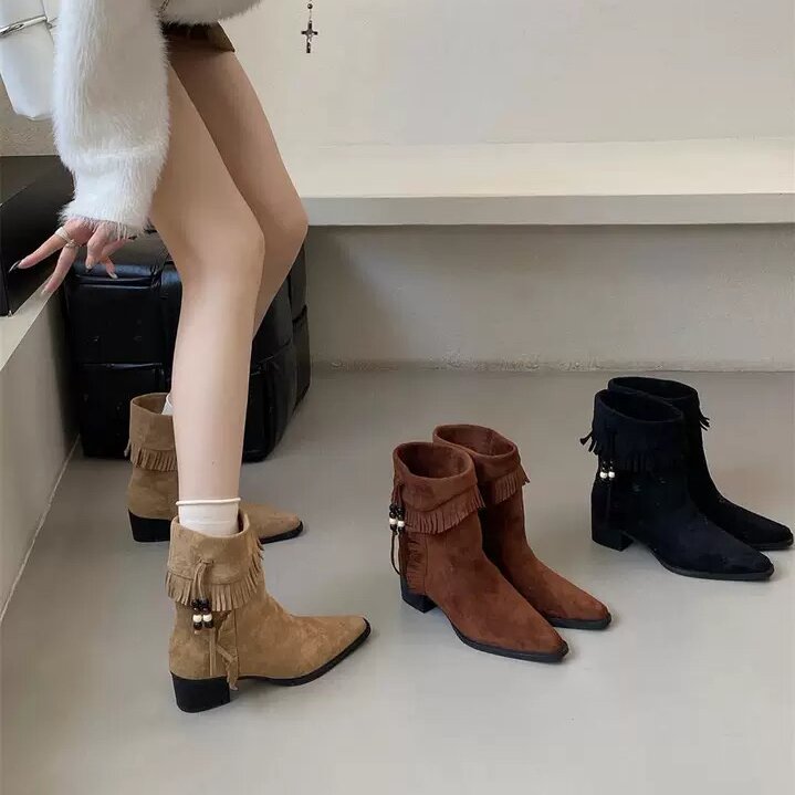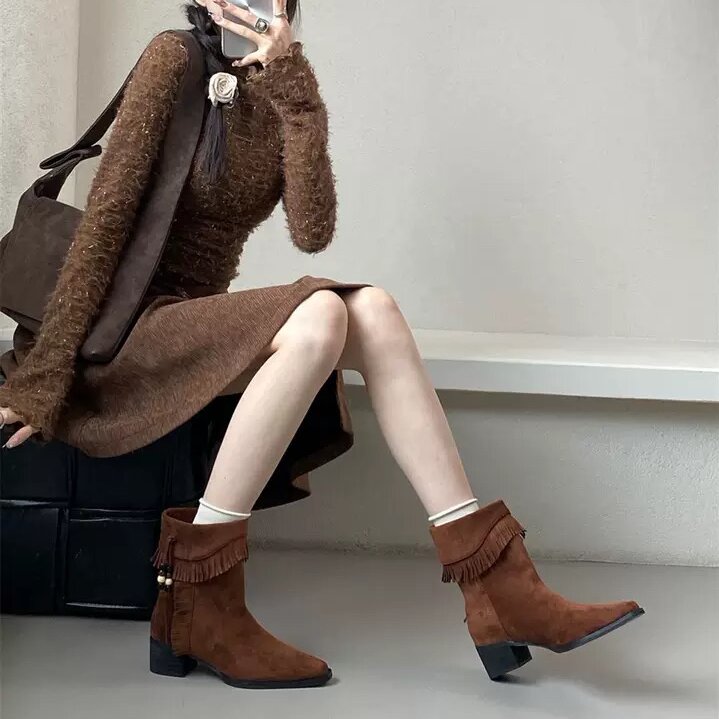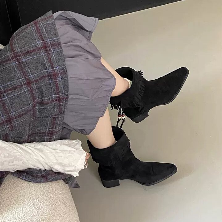 ALIGUIFEI短靴女秋单靴2025新款显瘦短筒马丁靴尖头瘦瘦靴女粗跟