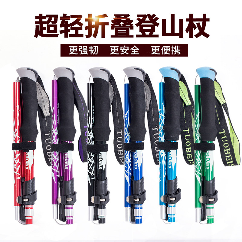 高硬度轻便式折叠手杖专z业户外登山5节伸缩登山杖