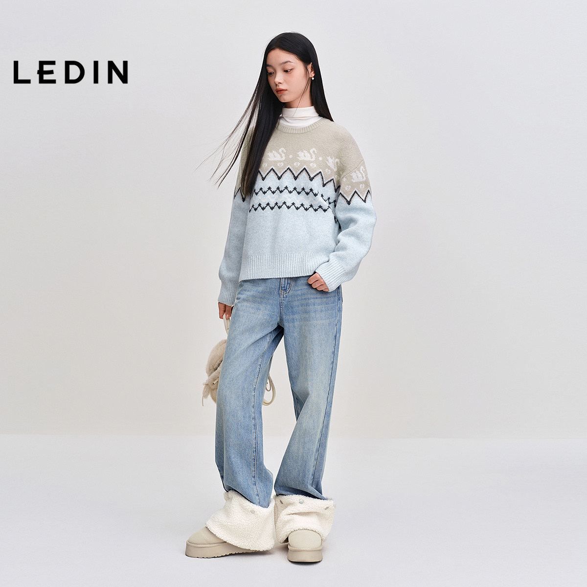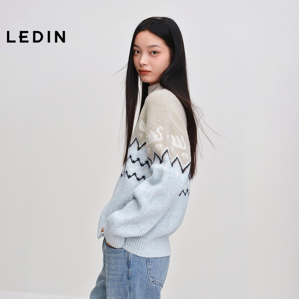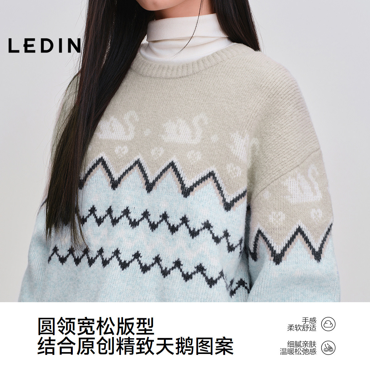 【商场同款】乐町费尔岛蓝色毛衣冬新款天鹅提花针织衫C1EEF4418