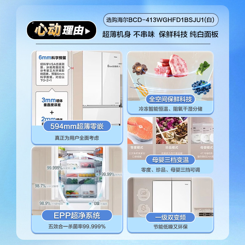 海尔冰箱零嵌入413升500L超薄法式406升十字家用一级180风冷170