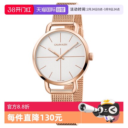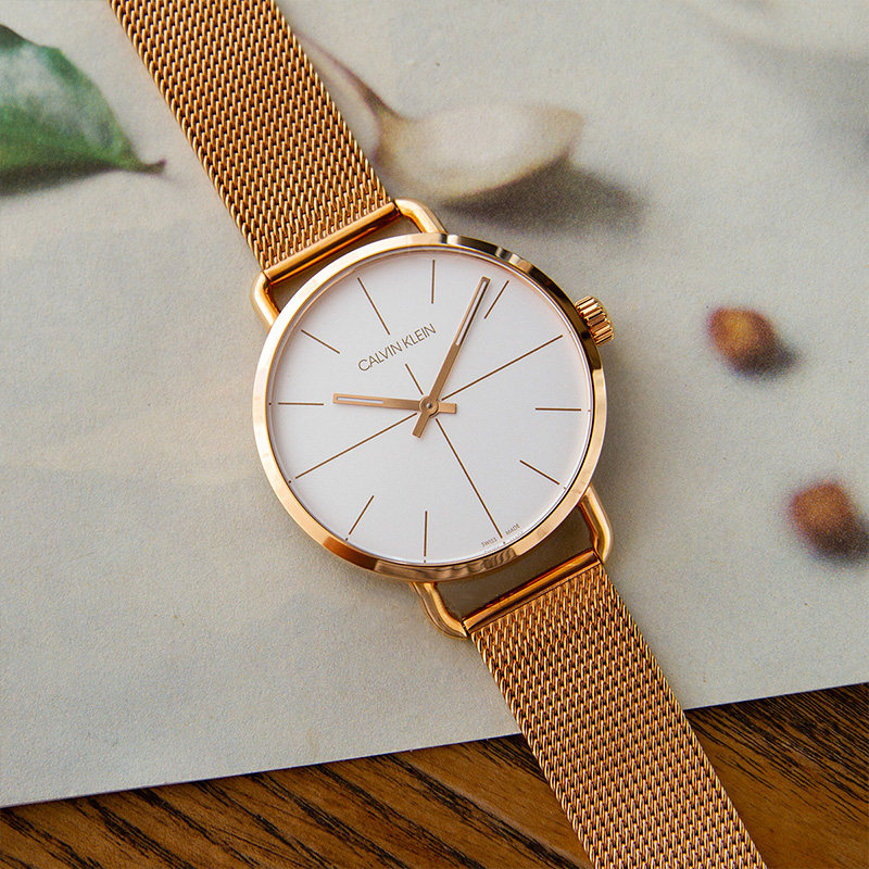 【自营】Calvin klein明星同款CK手表玫瑰金色表带手表瑞士腕表