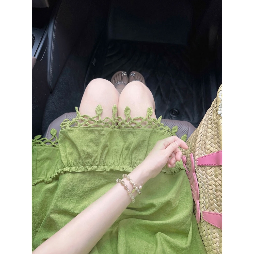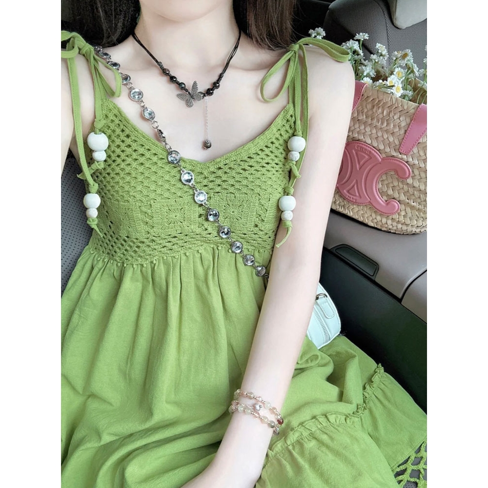 抖音品质 牛油果绿色流苏无袖吊带连衣裙女夏娃娃裙子多巴胺短裙