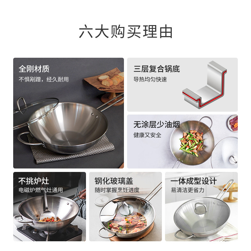 【自营】双立人不锈钢炒锅中式大容量煎炒锅无涂层家用厨房炒菜锅