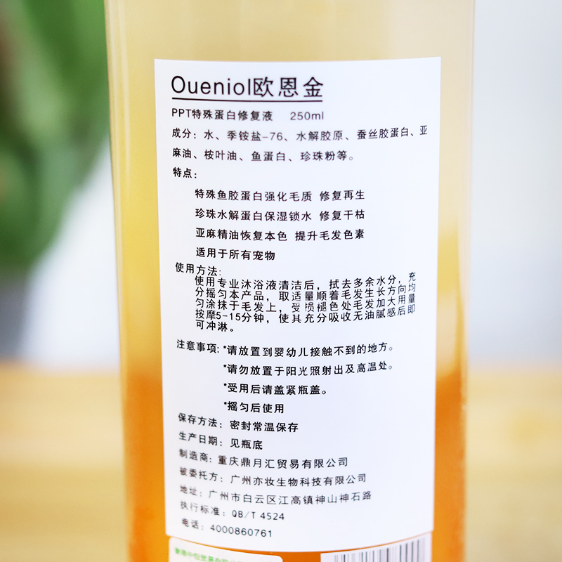 欧恩金PPT蛋白修复液250ml宠物通用护毛素护毛乳不打结宠物用品