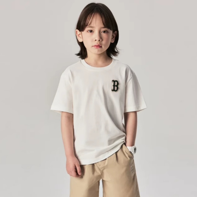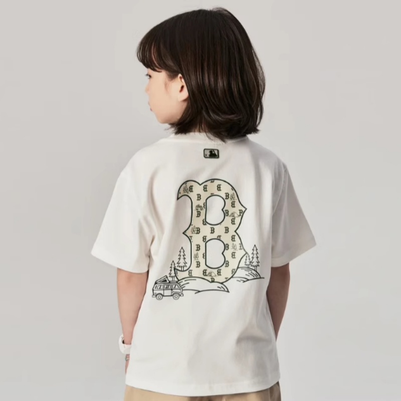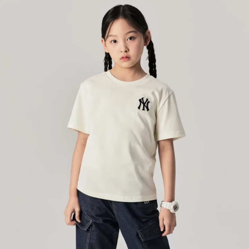 24新款MLB儿童短袖男女童NY刺绣复古老花休闲运动T恤7ATSM0643