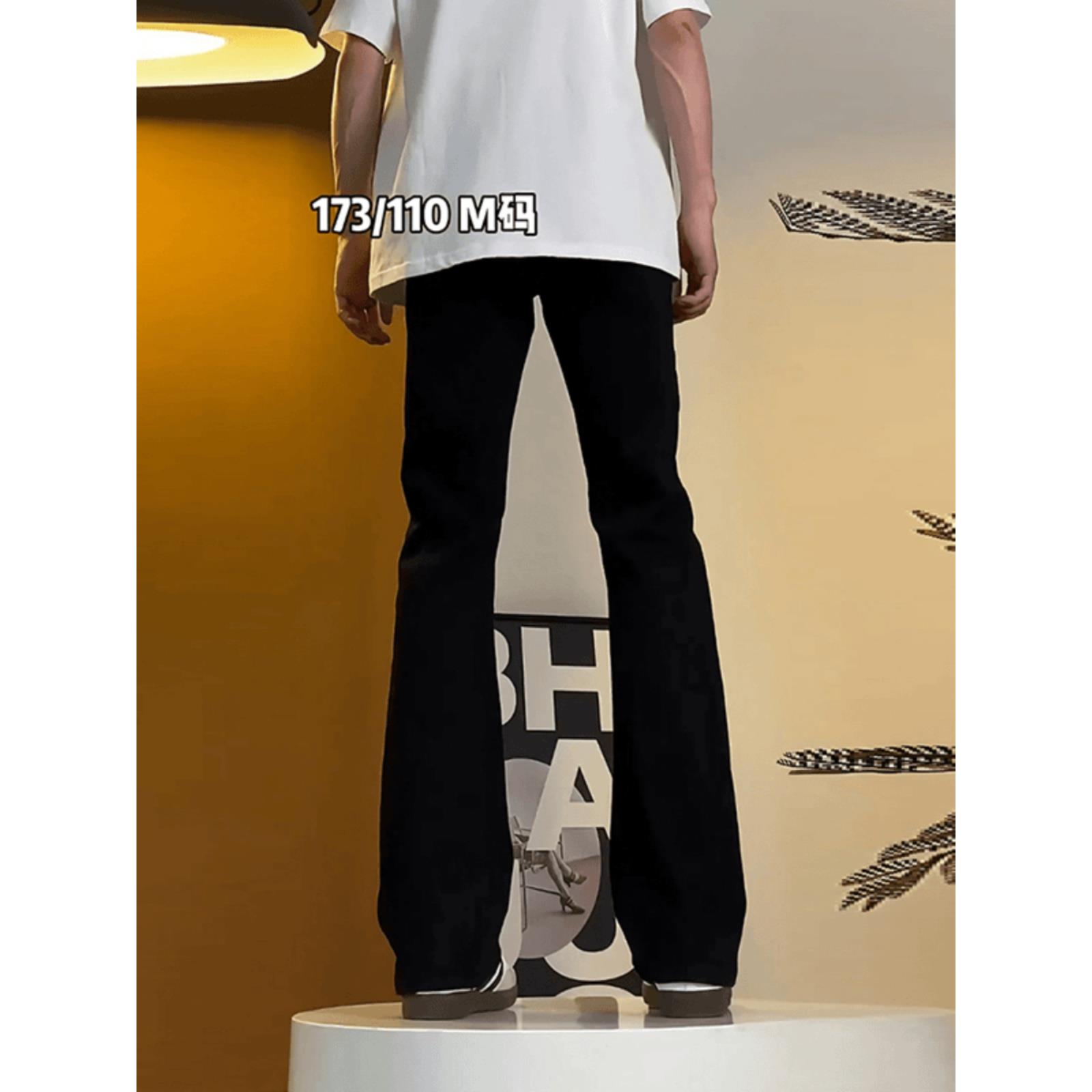 黑色弯刀牛仔裤男款2025秋冬加绒修身vibe直筒裤子cleanfit微喇裤