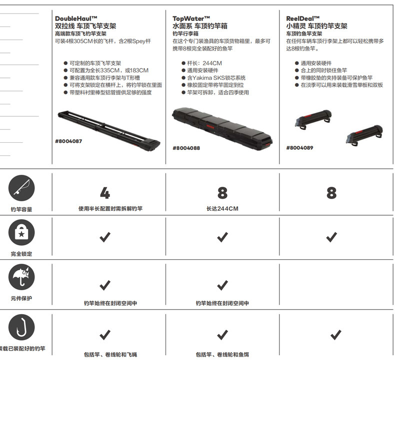 YAKIMA新款钓鱼竿箱可存放8根竿