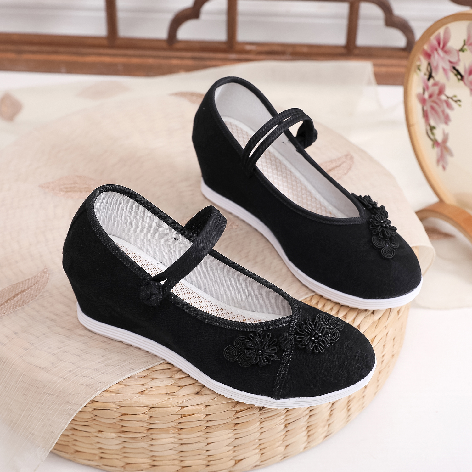 红色跳舞鞋古风汉服绣花鞋增高厚底民族风女鞋演出高跟旗袍配鞋子