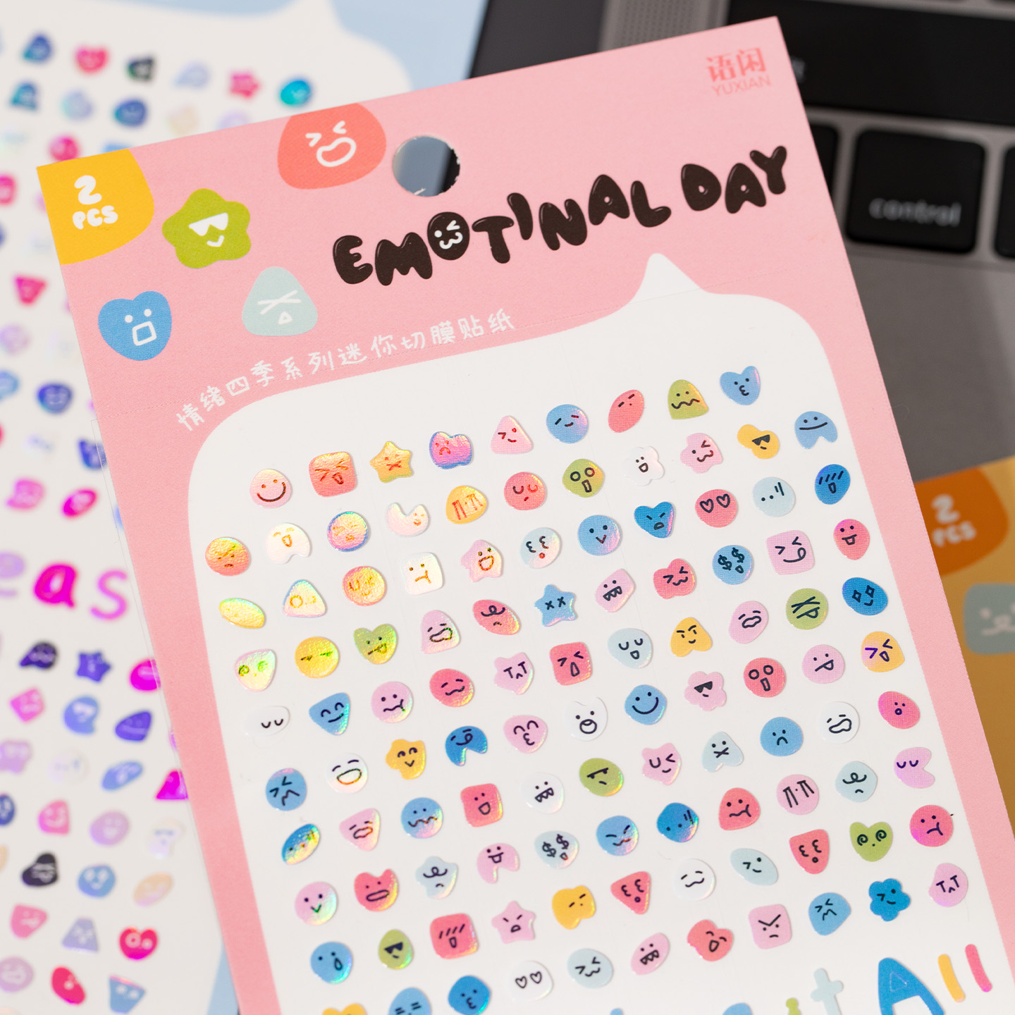 语闲情绪四季美甲小鼻嘎手帐贴纸可爱卡通表情笑脸手账日记贴画
