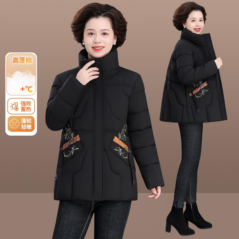 中老年人妈妈冬加装短款羽棉服人外套奶奶冬季8464858绒加厚绒连
