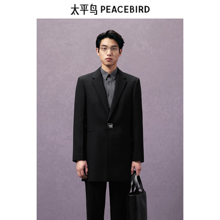 太平鸟男装 西服男中长款商务休闲一粒扣外套男秋季羊毛西装男