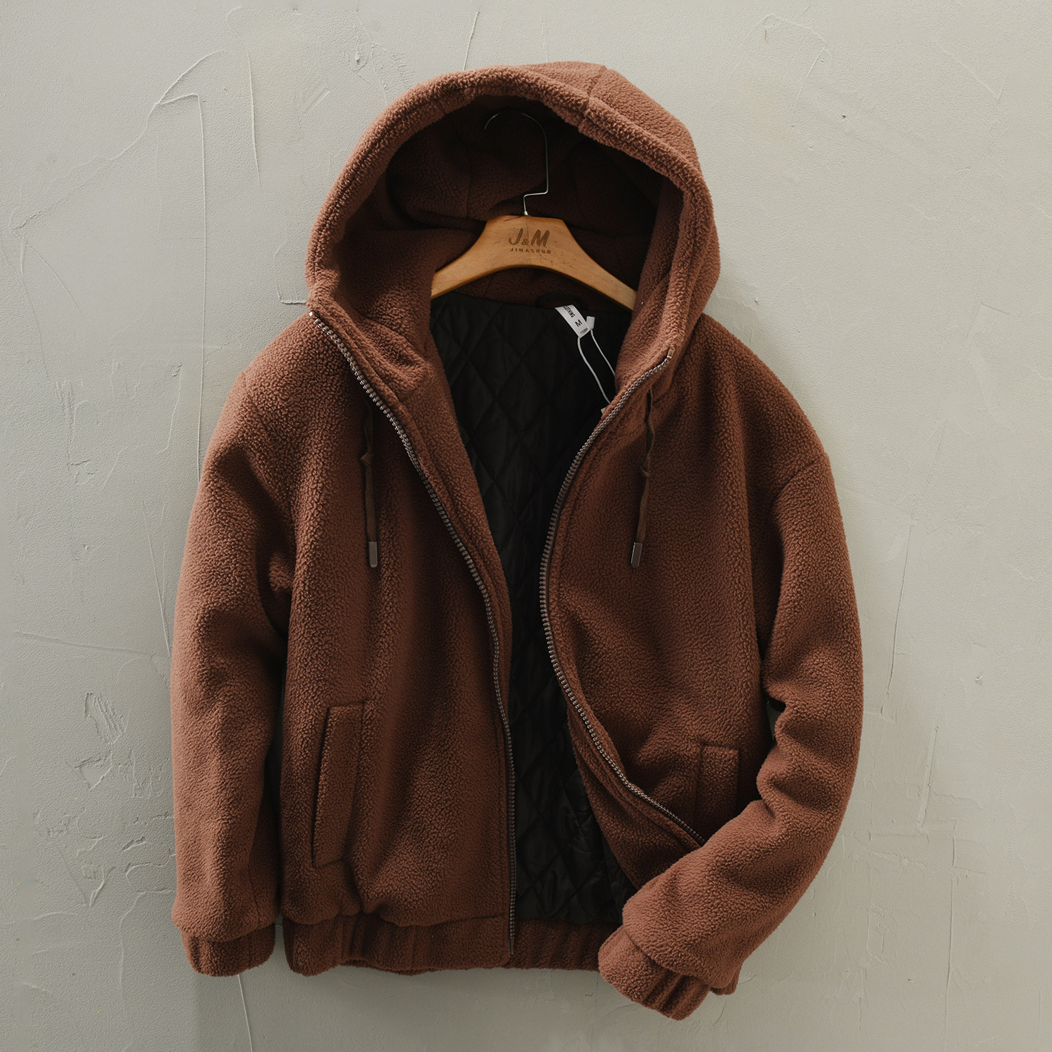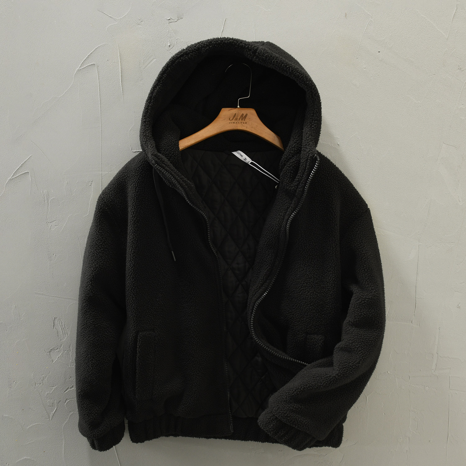 极麻冬季连帽仿羊羔绒保暖棉衣男士复古百搭休闲宽松基础上衣外套