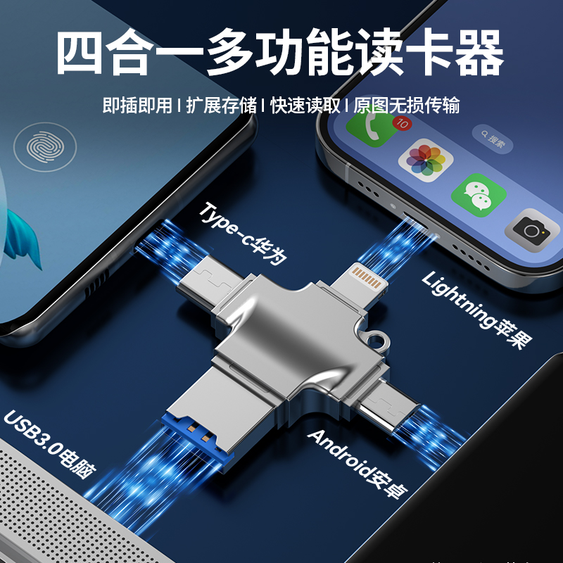 影巨人YR25 USB3.0四合一多功能转换器OTG转接头手机电脑TF卡通用