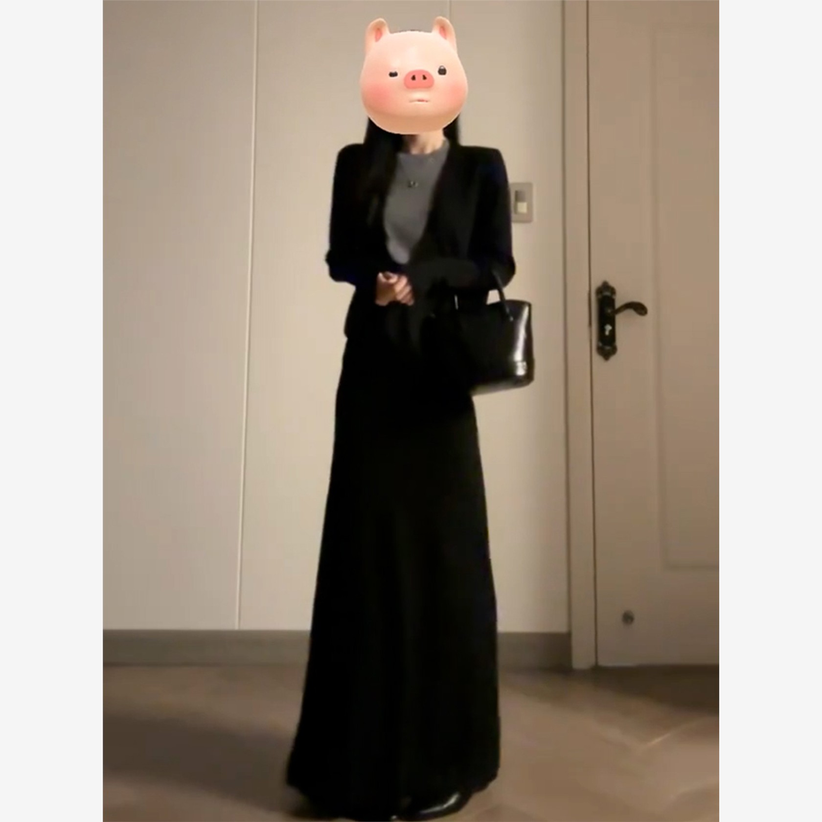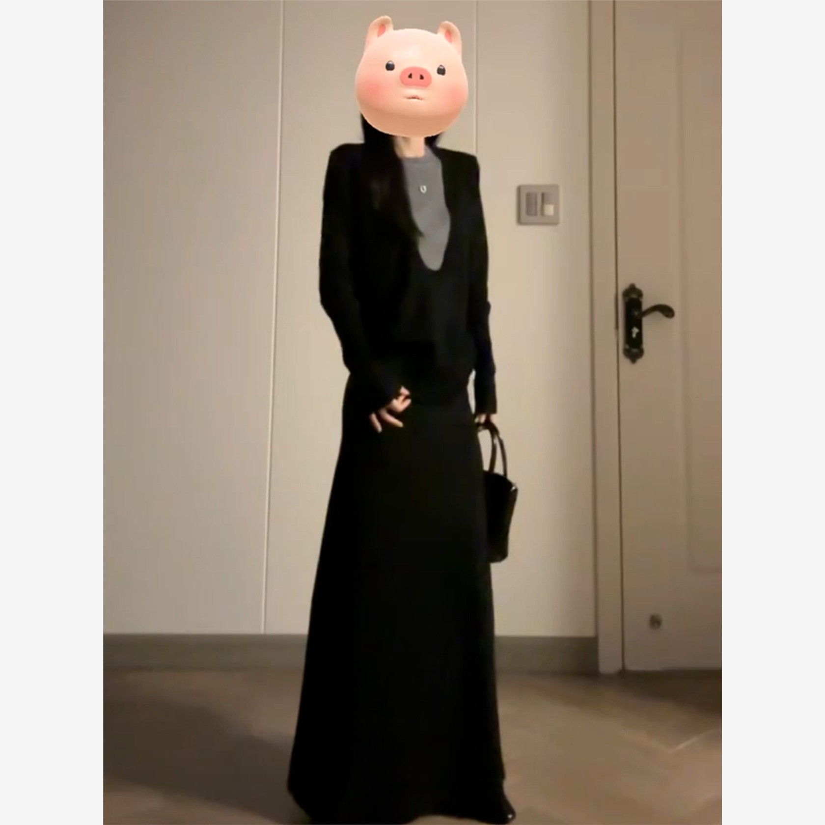 黑色假两件长袖针织连衣裙子女秋季2025新款韩系休闲穿搭两件套装