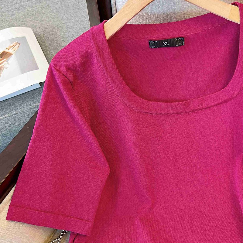 高端方领上衣胖MM独特240斤大码女装夏季遮肚短袖宽松针织线衣T恤