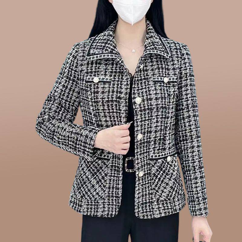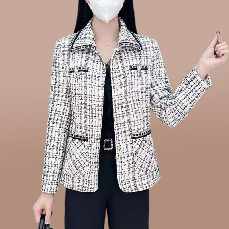 中年妈妈秋装西装新款中老年人春秋外套女短款洋气小香风减龄上衣