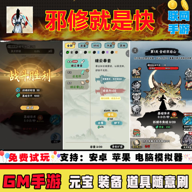 邪修就是快手游无限GM后台道具元宝钻石内部号辅助折扣礼包兑换码破译免费版游戏安卓i os鸿蒙联网