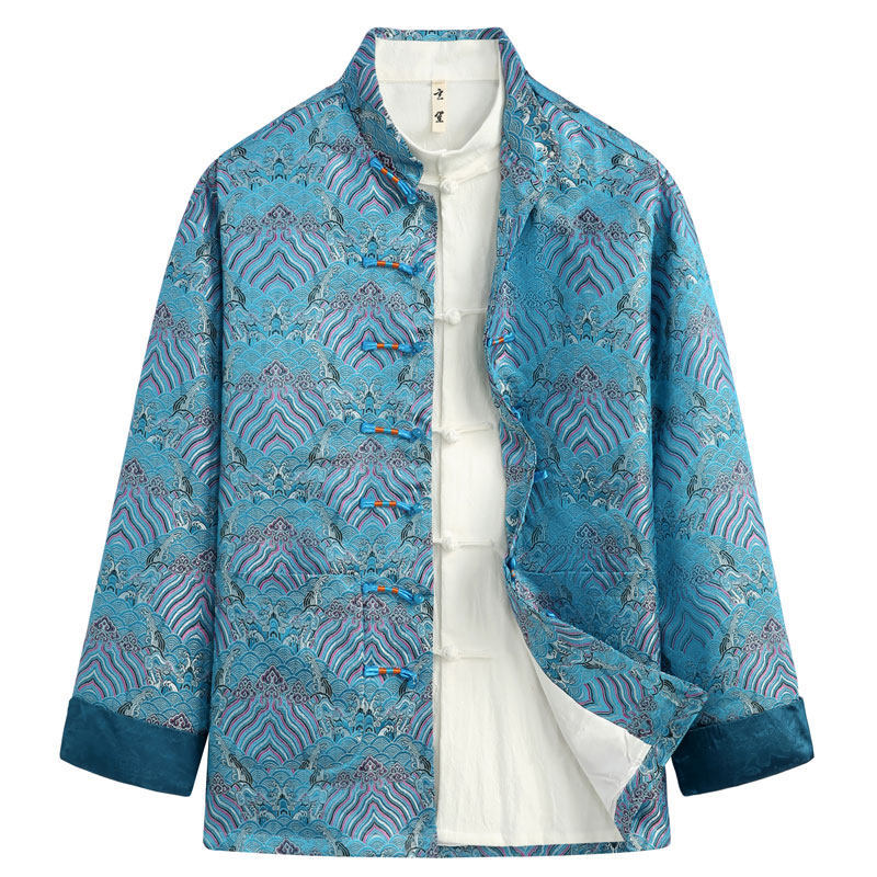 唐装男春新品中国风男装提花织锦缎海水纹国潮上衣男中式立领外套