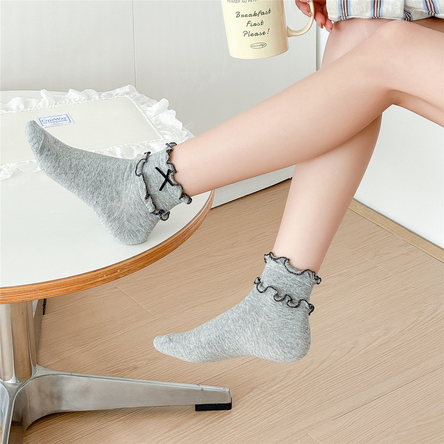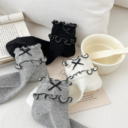 2026新款女士纯棉蝴蝶结装饰短袜 金丝卷边装饰袜 全店5双包邮