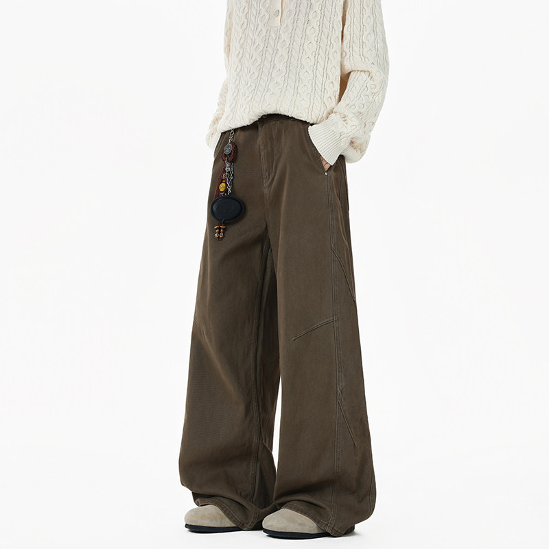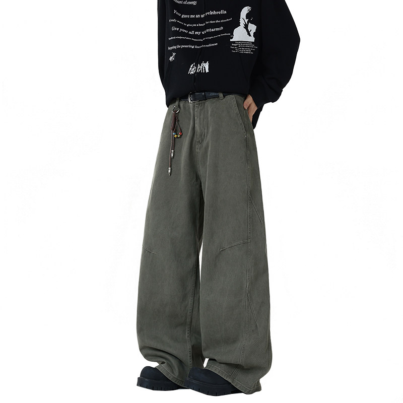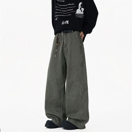 BOYUE帛跃复古解构弯刀工装牛仔裤户外青少年显瘦高街男女阔腿裤