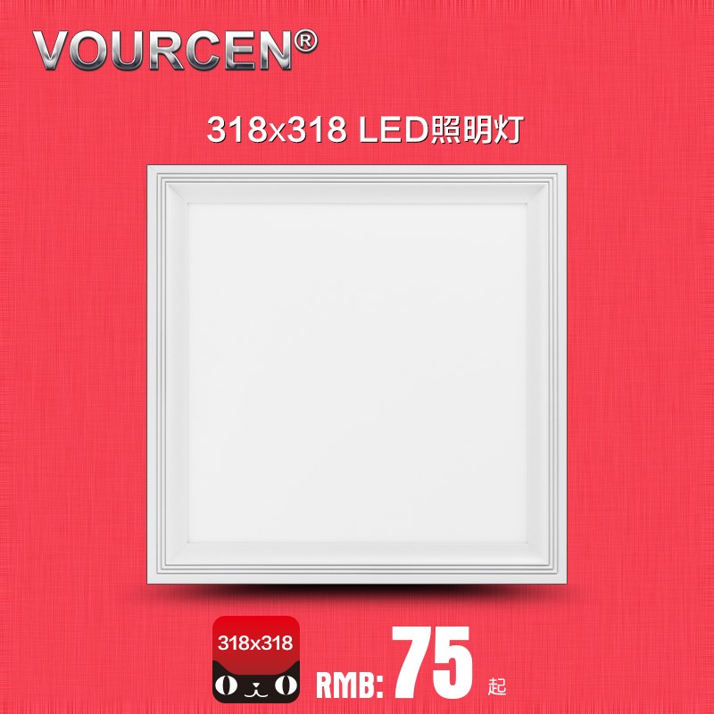 318*318集成吊顶灯LED照明灯护眼平板灯明文法狮龙棋厨卫灯高亮款