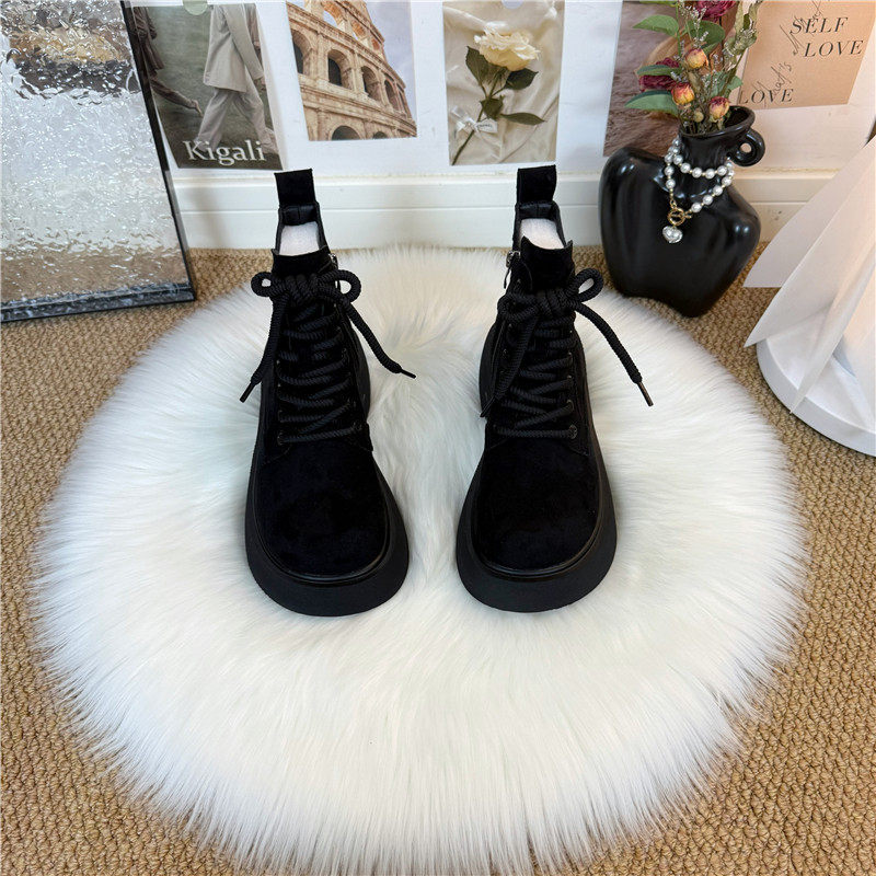 复古厚底马丁靴女2025秋冬季新款松糕软底绒面系带休闲英伦风短靴